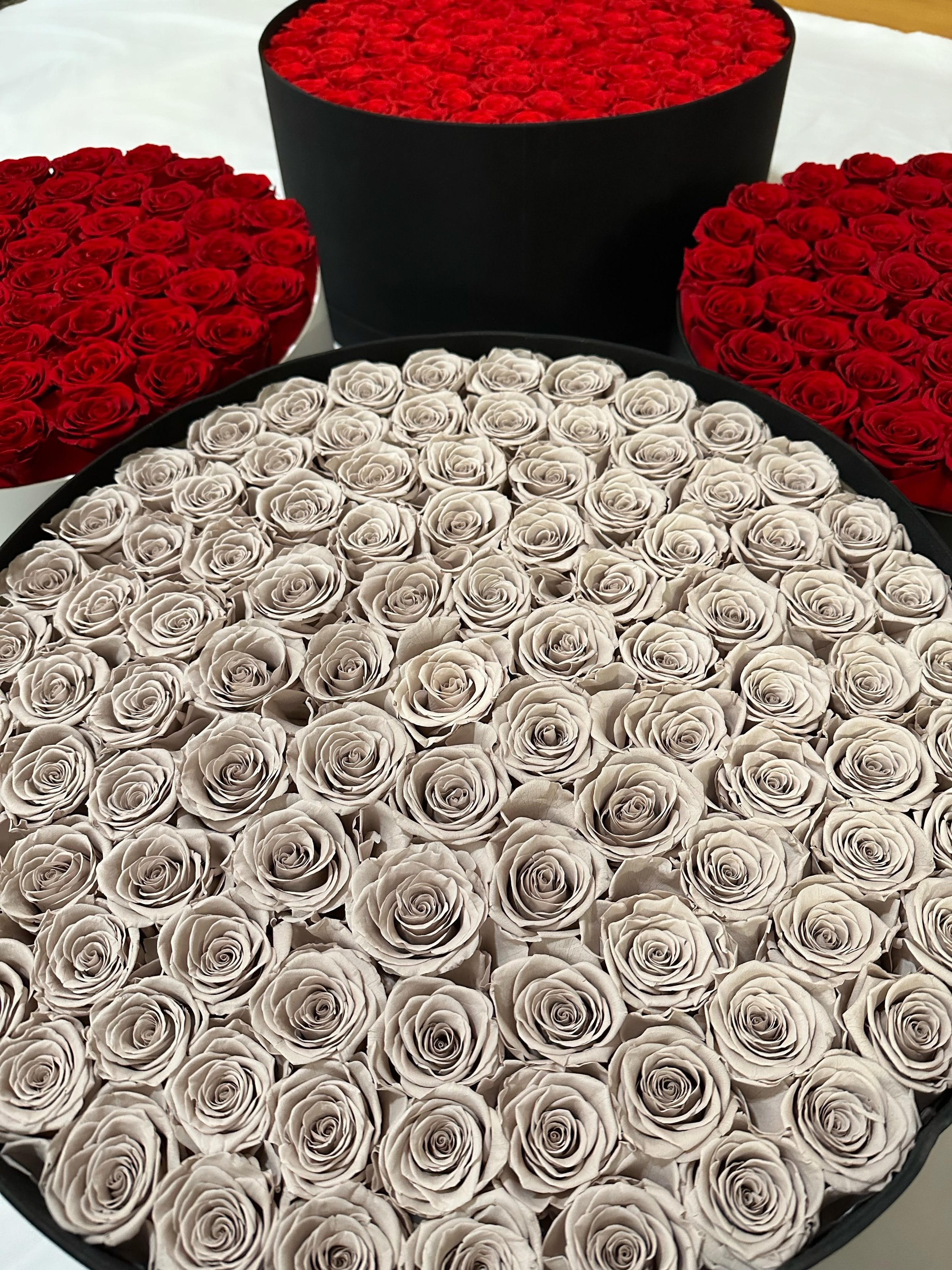 Indulge in the epitome of luxury with our exquisite collection of 100 khaki long-lasting roses.