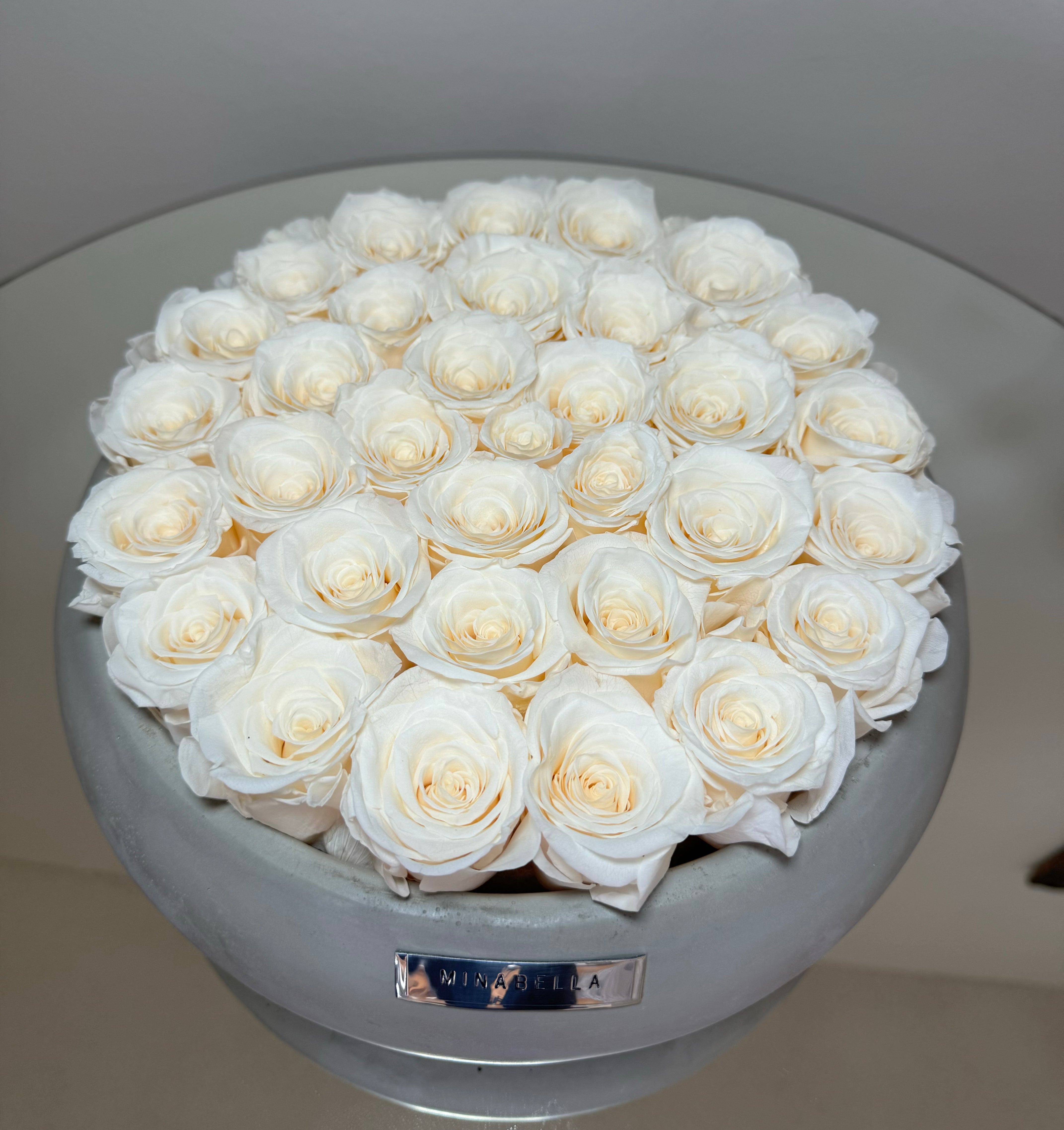 A breathtaking display of long lasting roses. The perfect centerpiece, be it in your home or office.
